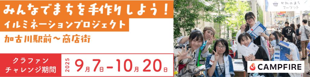 より多くの市民参加を目指すための企画の一つとして加古川駅前の広場を中心にベルデモール商店街からじけまち商店街を光の道でつなぎます!